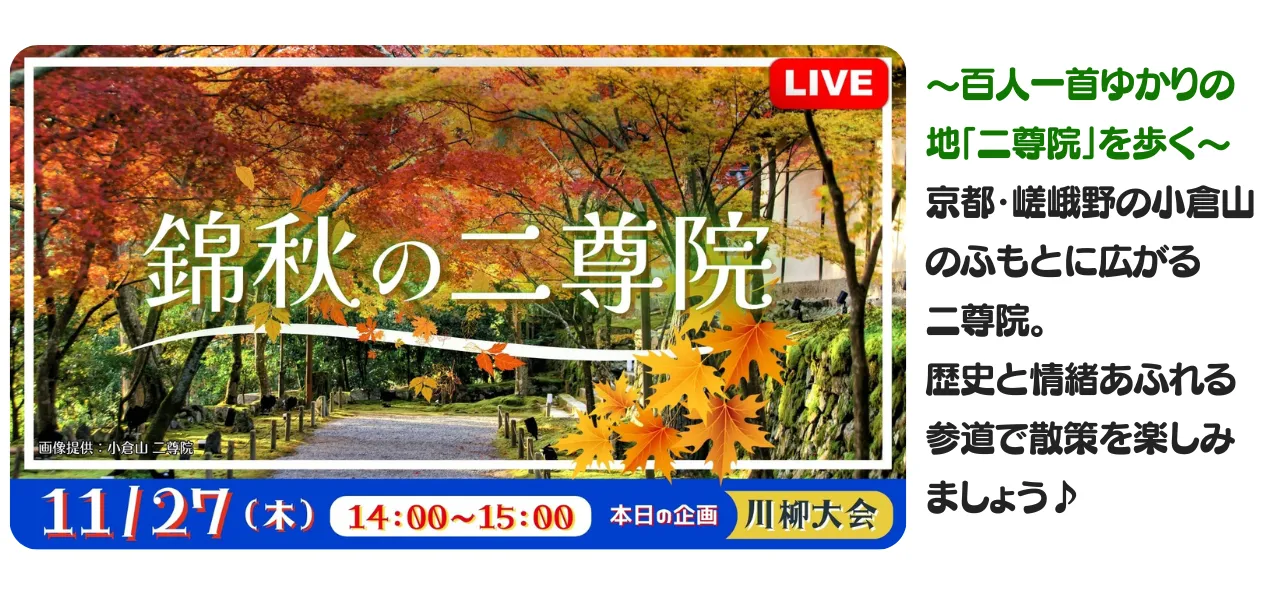 二尊院(にそんいん)は「嵯峨三名跡(天龍寺 ・大覚寺 ・二尊院)」のひとつに数えられる、百人一首にも詠われた嵯峨野の小倉山のふもとに広がる寺院です。有名な「紅葉の馬場」と呼ばれる広々とした参道は、桜や紅葉の名所として人気のスポット。数々の時代劇のロケ地にもなっています。